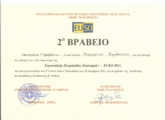 Το βραβείο μας στο Διαγωνισμός Εργαστηριακών Ασκήσεων Φυσικής - Χημείας Βιολογίας